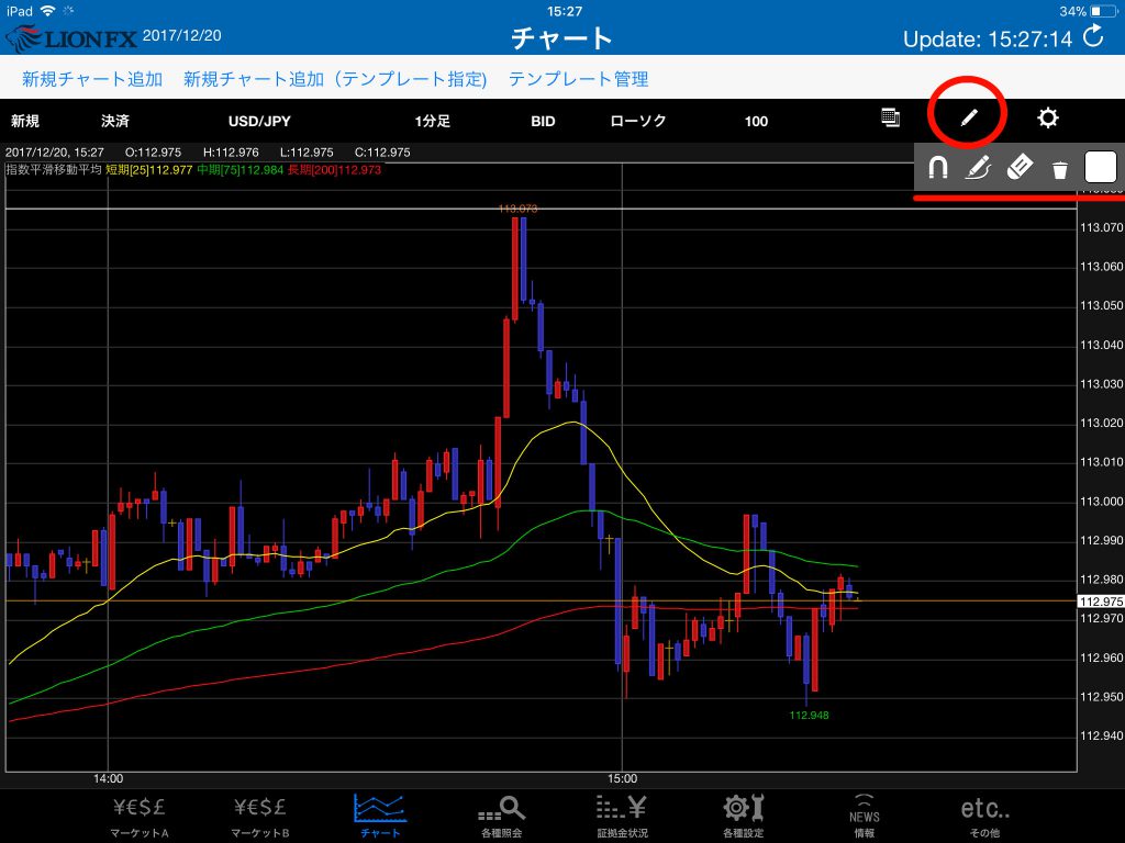 iPadでFXチャートに線を引いたりするならヒロセ通商の「LIONFX」が一番おすすめ。